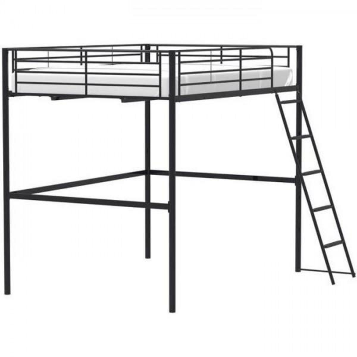 Lit mezzanine en métal ELIOT - Noir - Sommier inclus - 140 x 200 cm