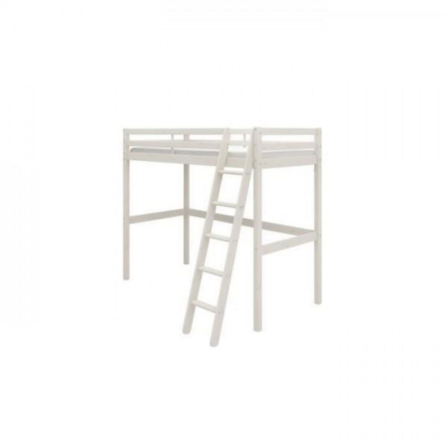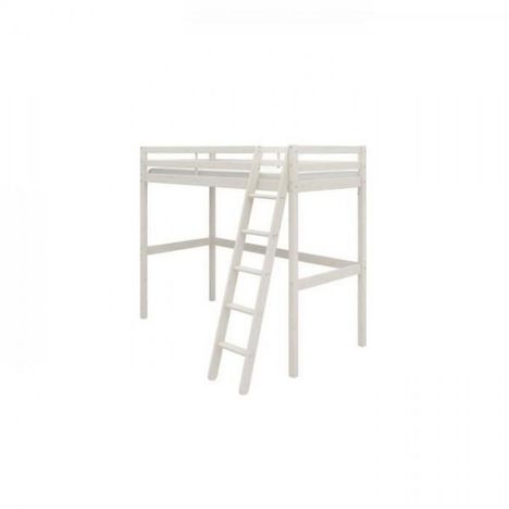 ERIKA Lit mezzanine enfant - Structure en bois Pin massif - Coloris : Blanchie - Montage échelle réversible a gauche ou a droite - Couchage : 90 x 190 cm - Sommiers inclus - Livré sans matelas - Dimensions totales : L197.7 x P152 x H176.2 cm - Le couchage en hauteur ne convient pas aux enfants de m