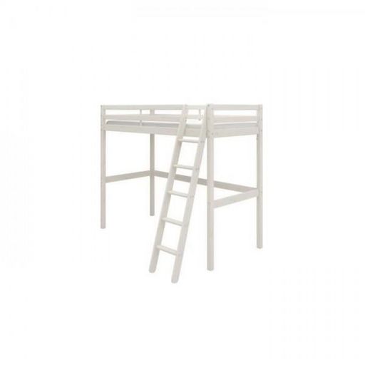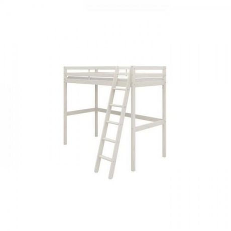 En savoir +ERIKA Lit mezzanine enfant - Structure en bois Pin massif - Coloris : Blanchie - Montage échelle réversible a gauche ou a droite - Couchage : 90 x 190 cm - Sommiers inclus - Livré sans matelas - Dimensions totales : L197.7 x P152 x H176.2 cm - Le couchage en hauteur ne convient pas aux enfants de moins de 6 ans.