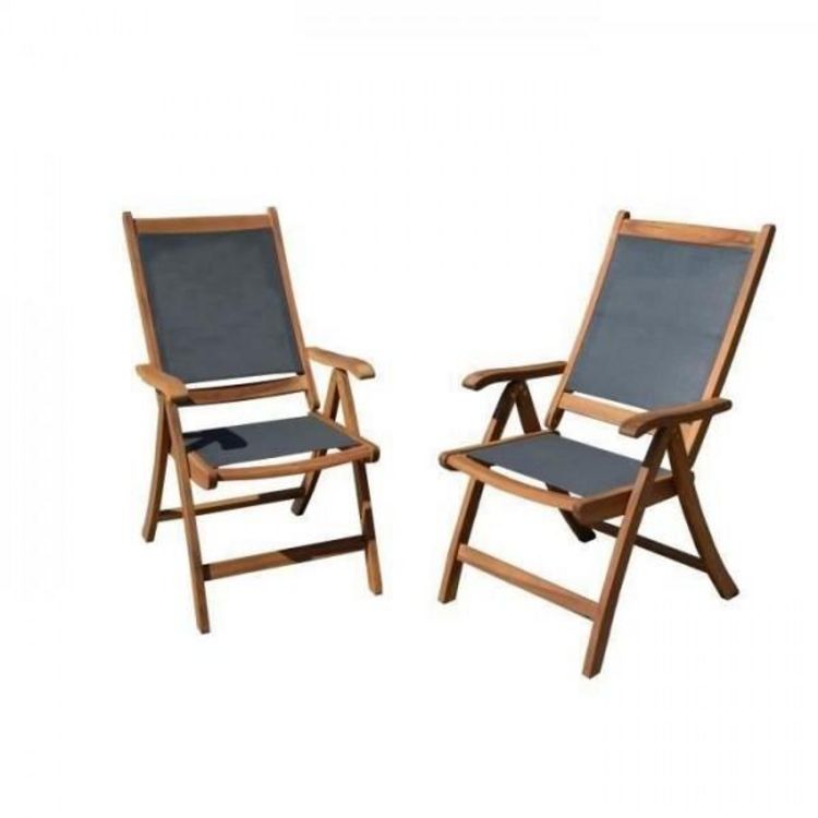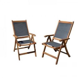 Lot de 2 fauteuils de jardin pliants en bois d'acacia FSC et textilene - Gris