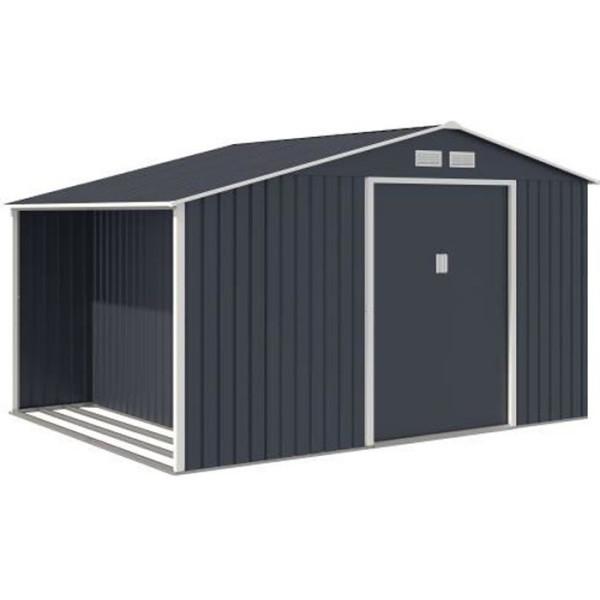 NOVA Abri de jardin en métal et abri bûches 8,72 m² - 342 x 255 x 202 - Kit d'ancrage inclus, 2 portes coulissantes - Gris