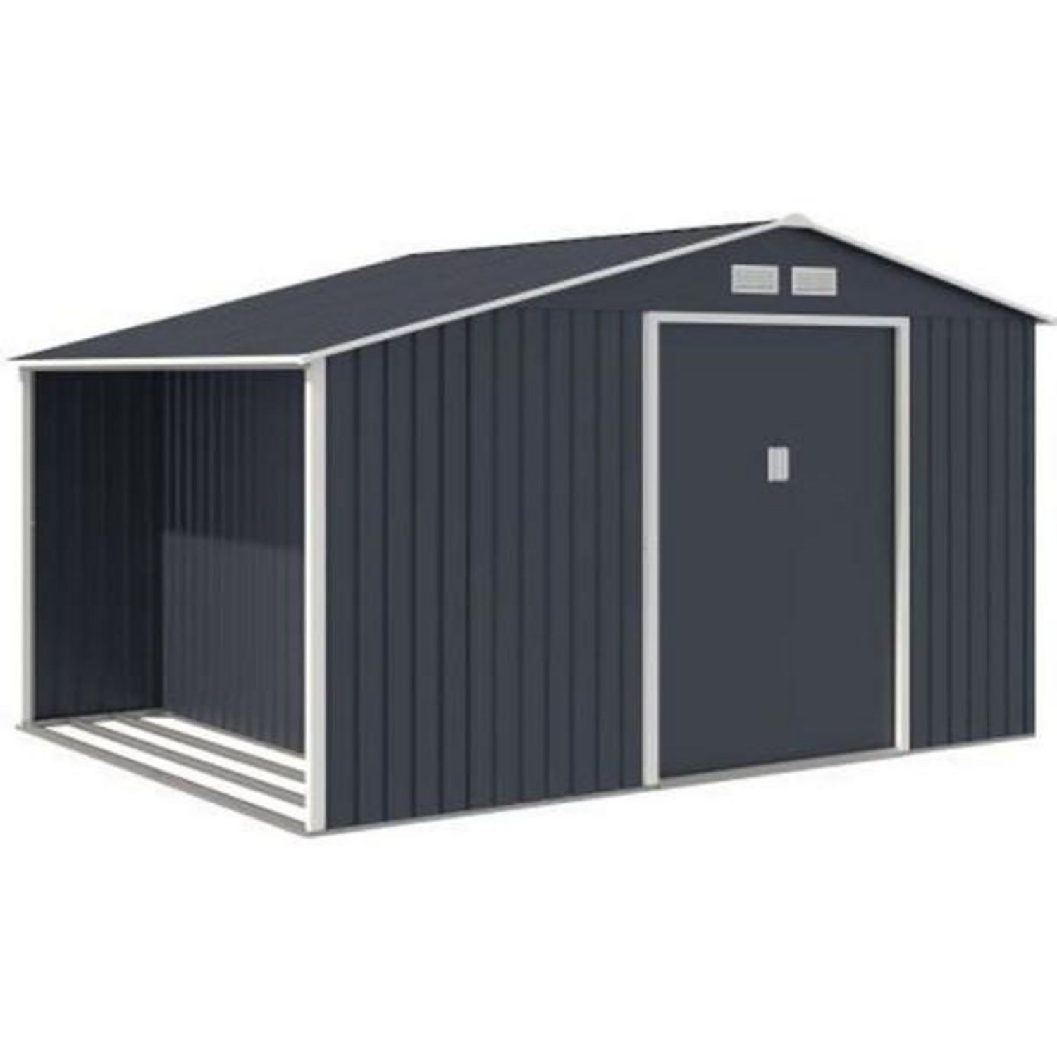 Cet abri de jardin en acier galvanisé de 8,72 m² avec kit d'ancrage inclus est idéal pour stocker vos outils et mobilier de jardin. Il dispose d'une double porte coulissante et d'une fenetre pour une utilisation facile. Sa structure en acier traité anticorrosion et ses panneaux en acier de 0.25 mm d'épaisseur lui conferent une grande résistance aux intempéries.