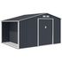 Cet abri de jardin en acier galvanisé de 8,72 m² avec kit d'ancrage inclus est idéal pour stocker vos outils et mobilier de jardin. Il dispose d'une double porte coulissante et d'une fenetre pour une utilisation facile. Sa structure en acier traité anticorrosion et ses panneaux en acier de 0.25 mm d