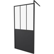 La paroi fixe 100x200 de style industriel noir est fabriquée en métal avec un encadrement en aluminium noir mat. Le verre transparent de 5 mm d'épaisseur est réversible et réglable de 97,75 a 99,25 cm. Livrée avec une barre de renfort extensible de 80 a 105 cm, cette paroi fixe est facile a installer. Elle convient pour une douche et est garantie 2 ans.