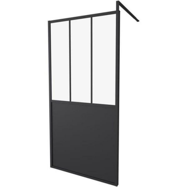 La paroi fixe 100x200 de style industriel noir est fabriquée en métal avec un encadrement en aluminium noir mat. Le verre transparent de 5 mm d'épaisseur est réversible et réglable de 97,75 a 99,25 cm. Livrée avec une barre de renfort extensible de 80 a 105 cm, cette paroi fixe est facile a installe