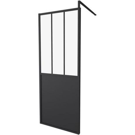 Cette paroi fixe de 80x200 cm au style industriel noir mat est idéale pour une installation de douche réversible. Elle est fabriquée en métal avec des profilés en aluminium et un verre transparent d'une épaisseur de 5 mm. Sa couleur principale est le noir et elle convient parfaitement pour une douch