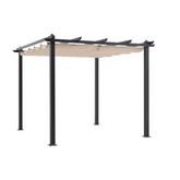 Pergola en aluminium 3x3 m CORDOBA - Structure en aluminium - Toile en rétractable en polyester 200 g/m² - Traité anti-corrosion - Dimensions : 300x300x240 cm - Coloris : structure anthracite et toile beige.