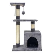 Petit arbre a chat avec niche et balle de jeu - ALC07 - Couleur gris - Dimensions : 50 x 30 x 80 cm - Structure : 2 plateformes, 1 balle de jeu, 1 niche et poteaux a griffer - Composition : tige en sisal de 7 cm de diametre, tissu court en peluche 220gsm, panneaux de fond - Poids net : 5.8 Kg