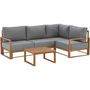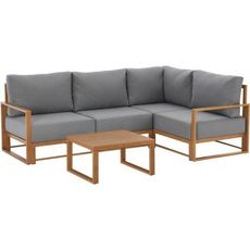 Salon de jardin canapé d'angle SANTA - Aluminium effet bois - 5 personnes - Gris clair