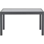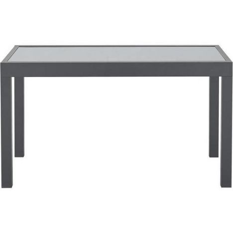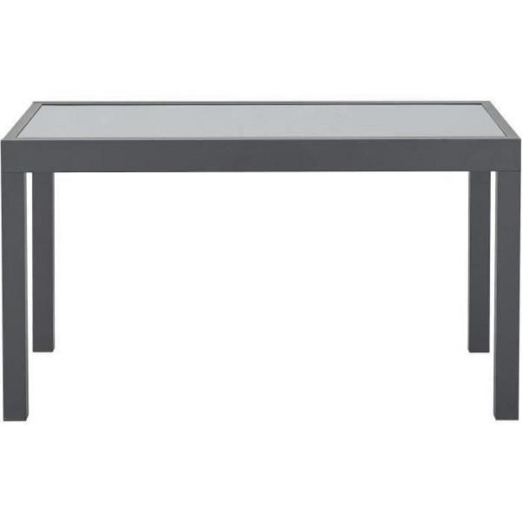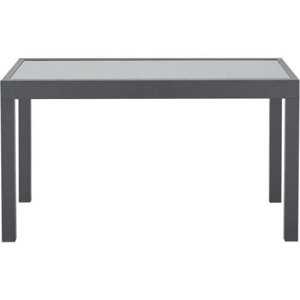 Table de jardin 6 a 10 personnes avec structure en aluminium et plateau en verre trempé. Le plateau est fixé par des ventouses. Dimensions : 135/270 x 90 x 75 cm. Convient pour une utilisation en extérieur. Design moderne. Capacité d'accueil pour 10 personnes. Couleur principale : gris. - Table vend
