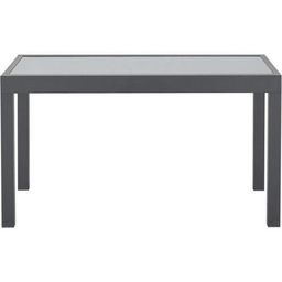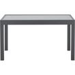 Table de jardin 6 a 10 personnes avec structure en aluminium et plateau en verre trempé. Le plateau est fixé par des ventouses. Dimensions : 135/270 x 90 x 75 cm. Convient pour une utilisation en extérieur. Design moderne. Capacité d'accueil pour 10 personnes. Couleur principale : gris. - Table vendue seule