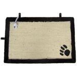Ce tapis a gratter en sisal séduira le chat par sa large surface de grattage et son jouet suspendu. La souris reliée a un élastique offrira de belles parties de jeu au chat tout en lui permettant de faire ses griffes. Les bords de ce tapis sont en peluche noire. Un motif patte agrémente la partie a