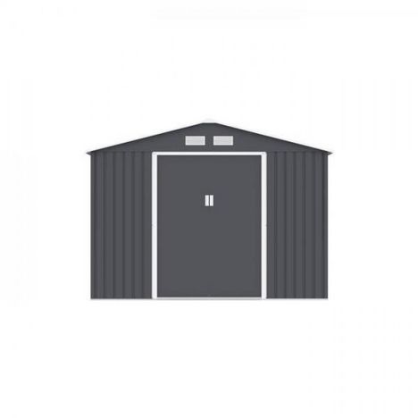 Abri de jardin avec kit d'ancrage inclus 8,48 m² Panneaux en acier galvanisé de 0,25mm Structure en acier galvanisé de 0,5 - 0,8 mm Dimensions: Surface utile (L x l): 263x305cm, soit 8,25 m² Surface hors tout (L x l x H): 277x319x202cm, soit 8,84 m² Poids net: 82kgs Hauteur des murs: 165cm Deux portes coulissantes verrouillables (l x H): 117x162cm Epaisseur du panneau: 0,25 mm Couleur: gris anthracite