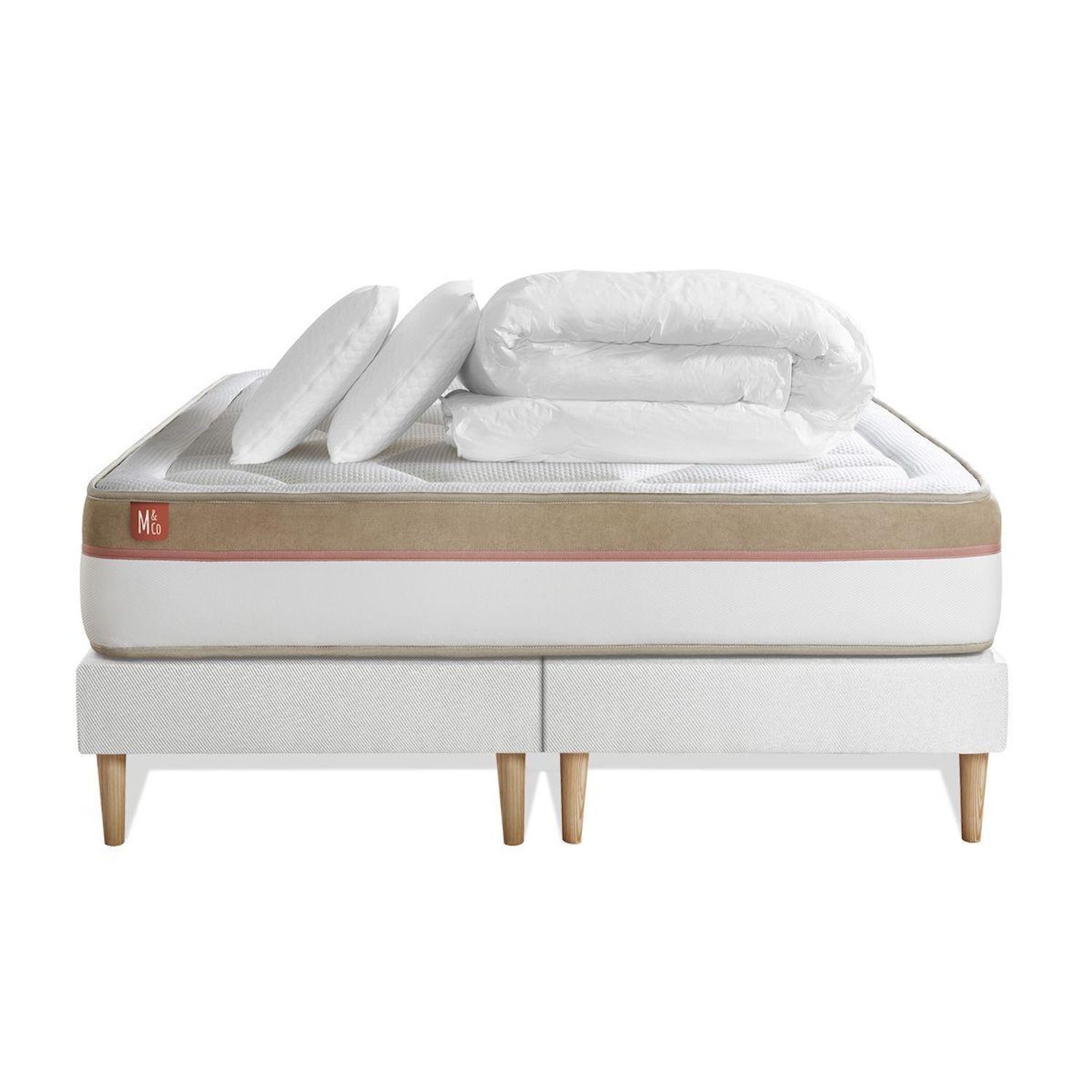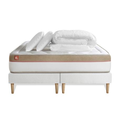 Pack prêt à dormir matelas LE COSY 200x200cm Mémoire de forme - Ep. 30cm + double sommiers Blanc + 2 oreillers + couette