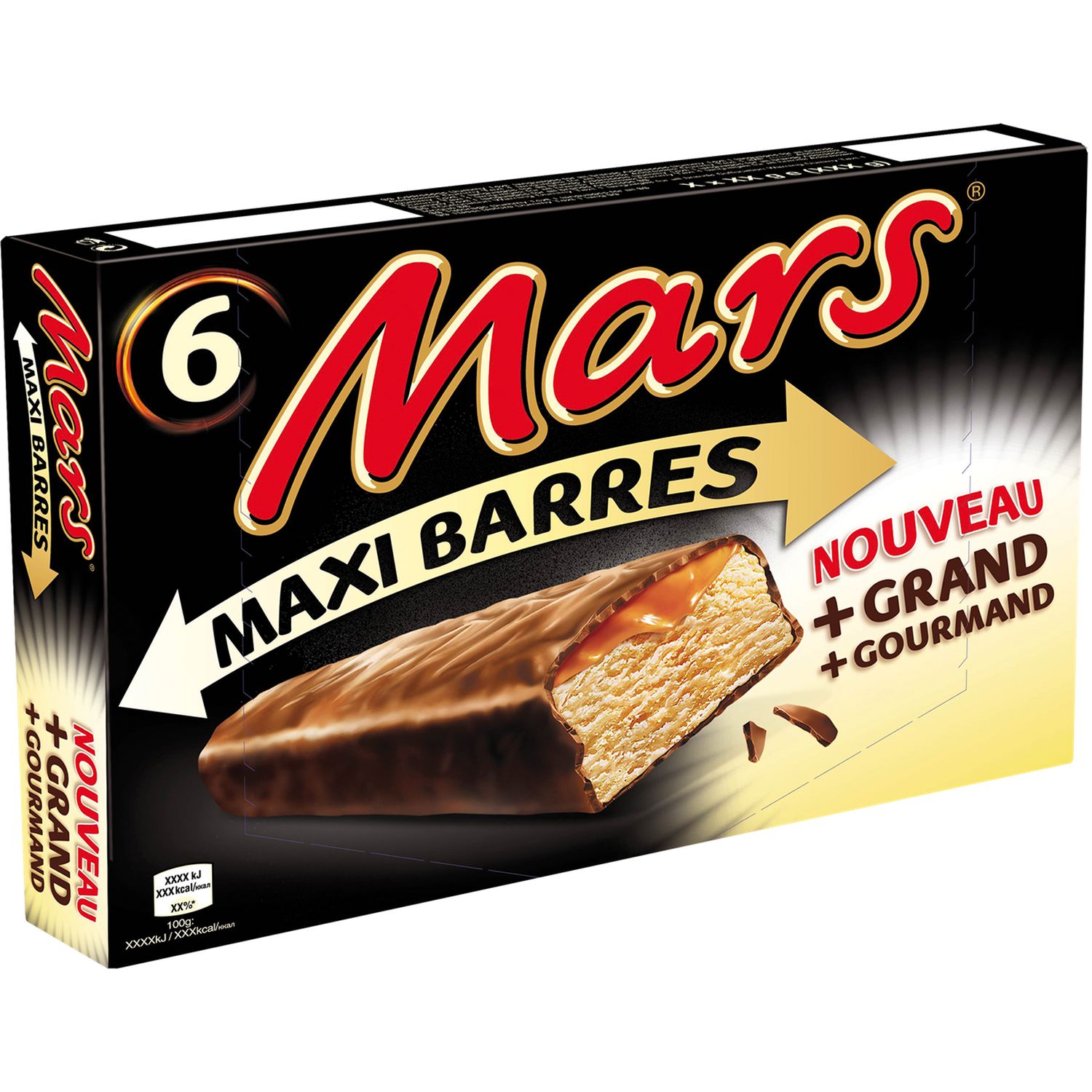 Crème glacée (51%) nappée de caramel (16%), enrobage cacao (32%) MARS glace nappée de caramel, enrobage cacao - 6 maxi barres 444ml
