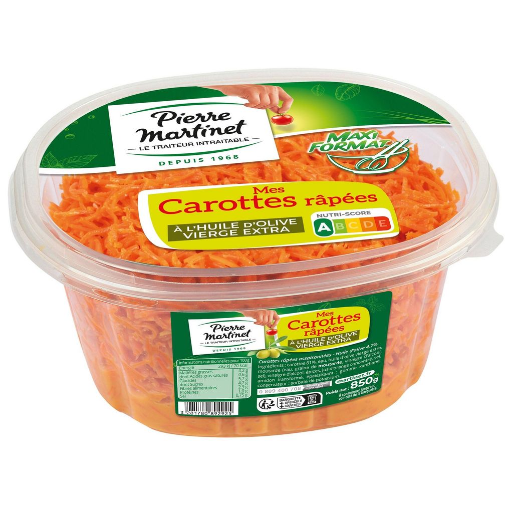 Afin de compléter et varier sa gamme de Carottes râpées, Pierre Martinet intègre une nouvelle saveur : l’Huile d’Olive Vierge Extra pour une recette douce et subtilement assaisonnée.