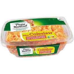 Ingrédients : Ingrédients : légumes (chou blanc 42%, carottes 32%, oignons), huile de colza, eau, sucre, poivre, vinaigre d'alcool, jus de citron à base de concentré, moutarde (eau, graines de MOUTARDE, vinaigre d'alcool, sel), jaune d'ŒUF en poudre, sel, sirop de glucose, amidon transformé, épaississant : gomme xanthane, antioxydant : acide ascorbique, conservateur : sorbate de potassium.