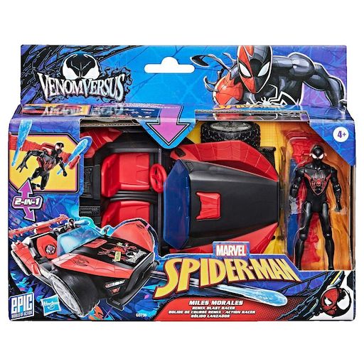 Préparez-vous à plonger dans l'univers palpitant de Spider-Man avec le Bolide de course Remix de Miles Morales de Marvel ! Ce pack inclut une figurine de 10 cm avec membres articulés pour de nombreuses poses dynamiques et un véhicule captivant rouge et noir pouvant accueillir deux figurines Epic Wor