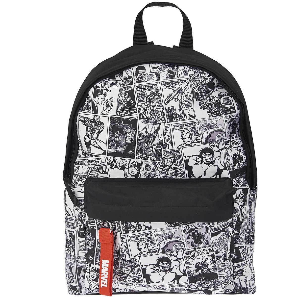 Ce sac à dos noir Avengers de 41 cm est un indispensable de la rentrée pour les fans Thor, Captain America, Iron Man, Hulk, Black Widow, Spiderman, Black Panther etc. de l’univers Marvel. Pour encore plus de style, il se pare d’une ligne bicolore, d’un imprimé façon comics sur le devant et d’une breloque assortie pour être au cœur de la tendance ! Sa taille est adaptée à un usage scolaire ou de loisir à partir du CM2 jusqu’au lycée. Doté d’une grande capacité de rangement, ce sac à dos fermé par glissières possède une poche intérieure ouverte, un compartiment principal spacieux pour ranger le nécessaire scolaire. Sur le devant, une poche zippée récupère les petites fournitures. Fonctionnel sur toute la ligne, ce sac à dos Avengers est équipé d'un dos matelassé, de bretelles ajustables par sangles et est confectionné dans une toile en polyester 300D qui résiste à l’usure, aux éraflures et aux accrocs du quotidien. Dès 10 ans.