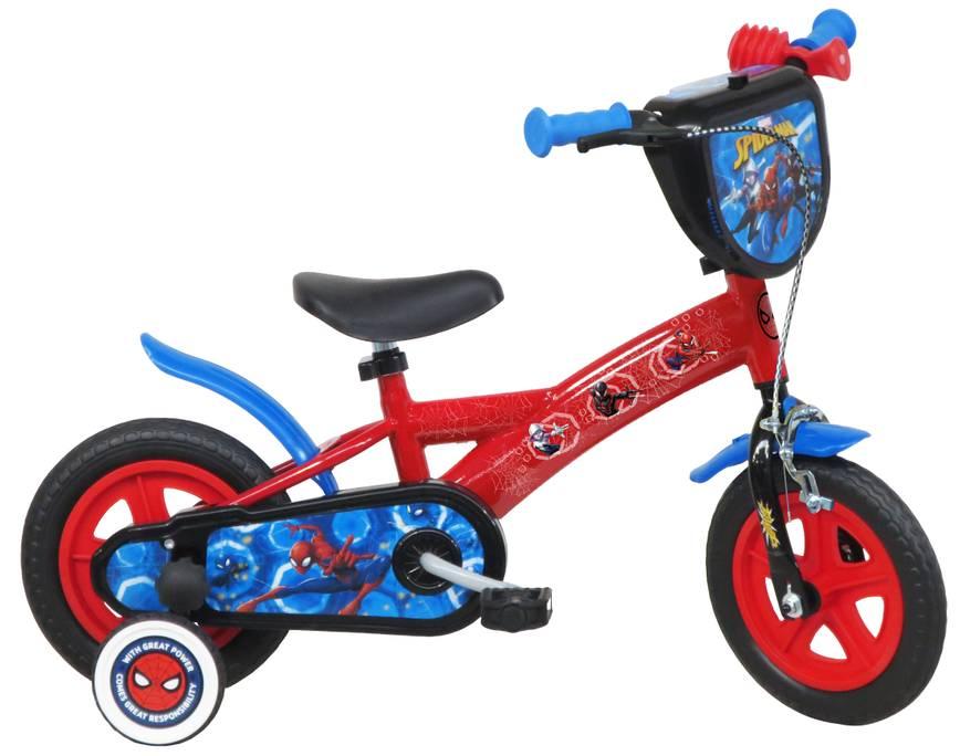 Vélo 10 Garçon Licence Spiderman pour enfant de 75/90 cm - Cadre Acier - Direction et pédalier en nylon - Pignon fixe - Frein avant Calliper - Carter de chaîne intégral - Gardes boue et poignées spécifiques pour augmenter la protection de l'enfant - Roues bâtons - Pneus EVA increvables - Stabilisateurs (montage sans outil) - Plaque décorative avant - Avertisseur sonore