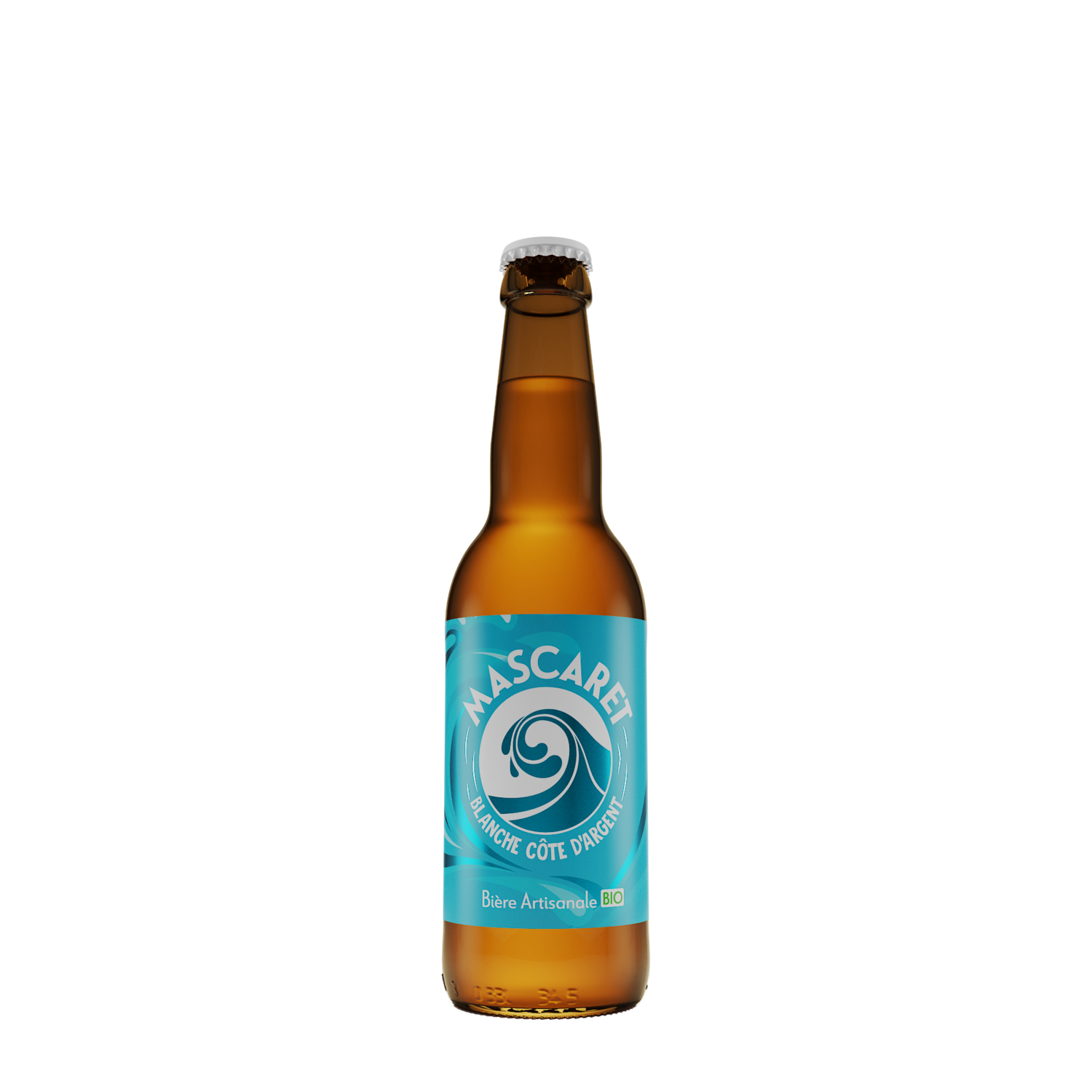 Bière Mascaret Blanche Côte d'Argent BIO Artisanale 5%/vol. Brassée à Bordeaux.