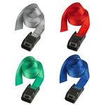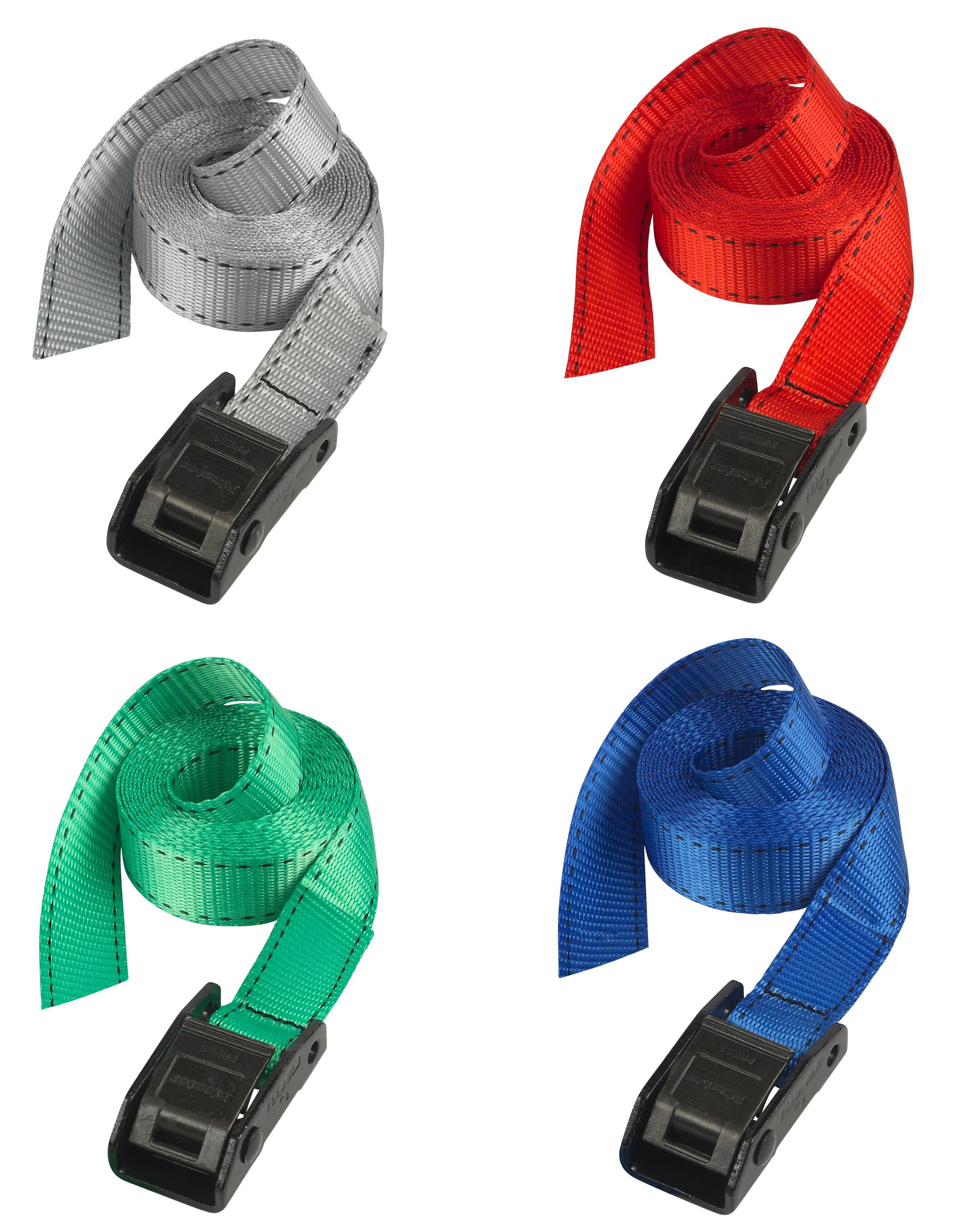 Le modèle Master Lock n° 3110EURDAT comprend deux sangles de 2,50 m de long et 25 mm de large avec une boucle en zamak. Cette sangle peut généralement être utilisée comme sangle d'arrimage lorsqu'un crochet n'est pas nécessaire. Boucle renforcée à dents pour atteindre une capacité d'arrimage de 150