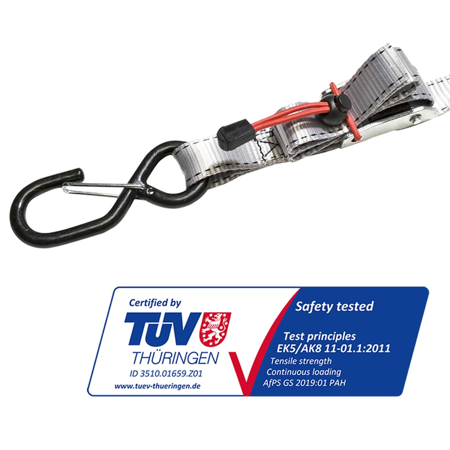 3113EURDAT Sangle d'Arrimage avec Crochets et Boucle, Gris, 1,80m x 25mm Sangle, Pack de 2