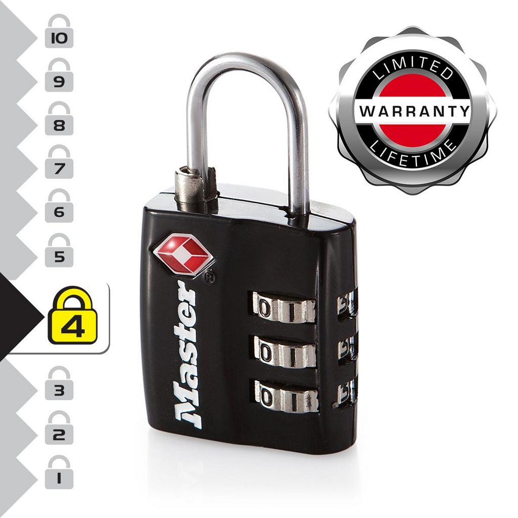 Le cadenas pour bagages certifié TSA à combinaison programmable Master Lock n° 4680EURDBLK comprend un corps en métal de 30 mm de large pour une meilleure durabilité. Pour une utilisation en intérieur , adapté pour les sacs à dos, valises, malettes, sacs de sports et autres. L'anse de 3 mm de diamètre fait 19 mm de haut et est en acier, ce qui offre une meilleure résistance. Les agents de sûreté TSA (administration de la sécurité des transports aux États-Unis) peuvent ouvrir, inspecter et refermer les bagages fermés avec un cadenas certifié TSA. Fermez vos bagages avec le cadenas que les agents de la TSA ne couperont pas ! La garantie à vie limitée offre la tranquillité d'esprit d'une marque de confiance.