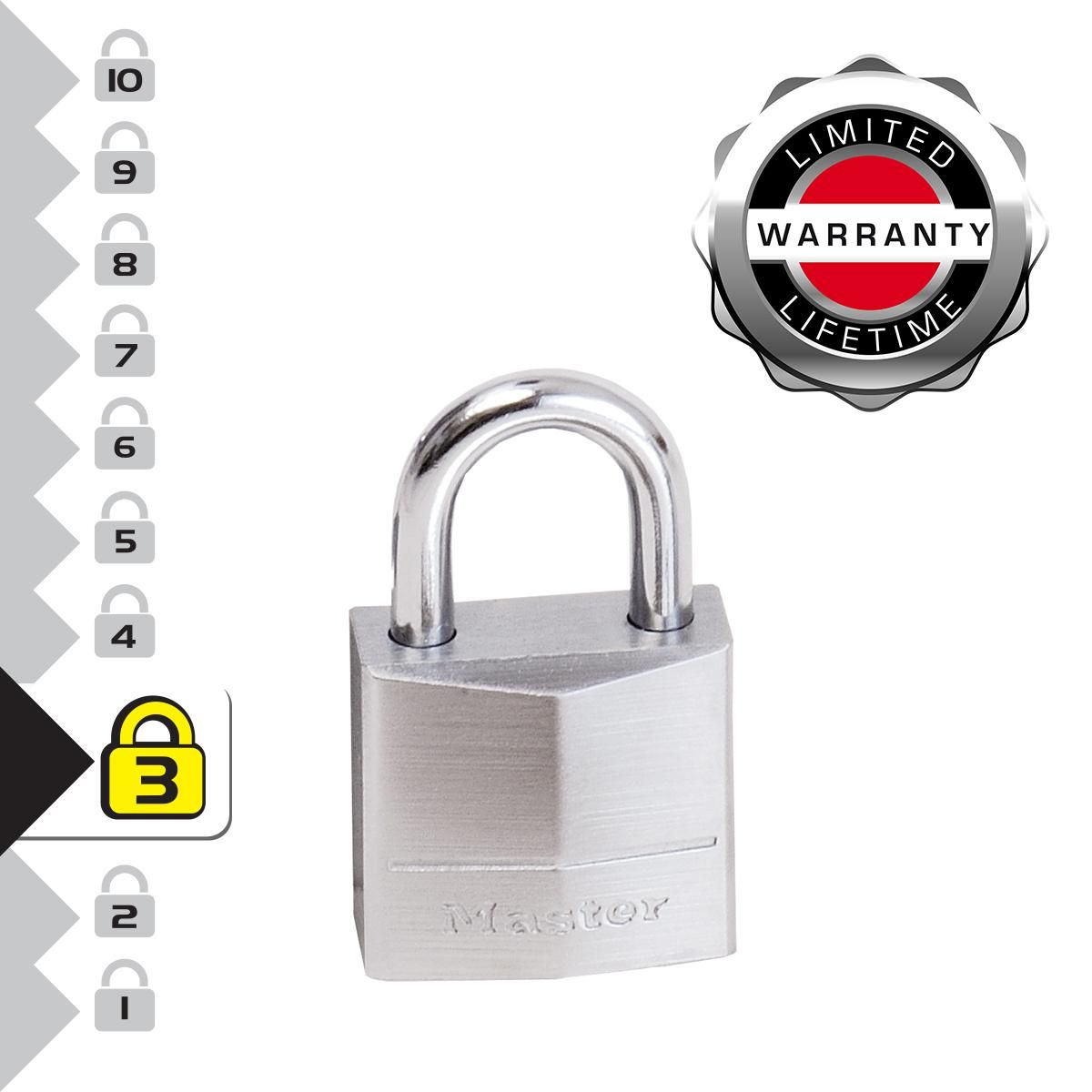 Le cadenas résistant aux intempéries Master Lock nº 629EURQ présente un corps en laiton massif nickelé de 20 mm de large pour une robustesse, une fiabilité et une résistance à la corrosion maximales. Pour un usage intérieur ou extérieur , idéal dans un environnement marin, pour sécuriser remises, grillages, portails, garages, véhicules et autres. L'anse d'une longueur de 12 mm pour un diamètre de 4 mm est constituée d'acier nickelé pour résister aux conditions extérieures extrêmes. La garantie à vie limitée offre la tranquillité d'esprit d'une marque de confiance.