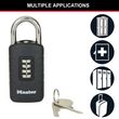 Le cadenas à combinaison programmable Master Lock nº 656EURDBLK présente un corps en zinc recouvert noir d'une largeur de 48 mm pour une durabilité optimale. Pour un usage extérieur , idéal pour sécuriser portails, abris de jardin, remises extérieures et plus. L'anse d'un diamètre de 8 mm et de 27 m