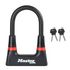 Le mini antivol U Master Lock nº 8278EURDPRO en acier cémenté présente un corps d'une largeur de 8 cm pour un maximum de résistance et de fiabilité. L'anse à double verrouillage de 14 mm de diamètre fait 15 cm de haut. Elle est en acier cémenté pour une résistance accrue au forçage, à la coupe et au