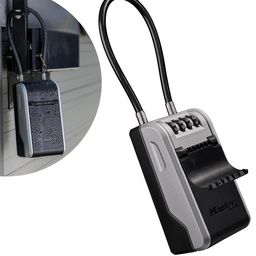 Si vous cachez encore vos clés sous votre paillasson, il est temps de changer pour une solution plus sécurisée. Le nouveau et innovant Select Access® 542EURD de Master Lock® est la solution idéale pour partager vos clefs et cartes d'accès aux personnes de confiance. Le nouveau design propose une anse en câble flexible et amovible facile à retirer et à installer pour positionner la boîte à clés sur un point fixe, ce modèle offre une sécurité portable et temporaire pour tous types d'application. Le coffre à clefs 5482EURD est la solution pour partager vos clés avec des services à domicile, des ouvriers, votre famille, vos colocataires ... C'est la solution parfaite pour AirBnB, les locations saisonnières, les colocations et les copropriétés car l'installation ne nécessite pas de percer le mur et peut être attachée n'importe où : poignet de porte, grillage, porte de garage, grille, portière de voiture ... Le modèle 5482EURD a une construction solide avec un corps en métal pour résister à tous types d'attaque. Le coffre a un très grand espace de stockage de 8.7 x 6.1 x 4.3 cm, l'espace de stockage est 2.5 fois plus grand qu'une boîte à clés standard, vous pouvez y sécuriser jusqu'à 10 clés (clefs de maison, clefs de voiture, cartes d'accès ...). Combinaison programmable à 4 chiffres, plus de 10000 combinaisons possibles. Les molettes sont larges et espacées pour pouvoir les manipuler facilement et rendre le code plus lisible. La boite à clé a une ouverture sur les côtés Tirer pour ouvrir , ce qui permet de l'ouvrir facilement d'une seule main. La couverture thermoplastique recouvre les molettes et le corps pour protéger le boitier des intempéries et des impuretés. La garantie limitée à vie, vous offre la tranquilité d'esprit d'une marque de confiance.