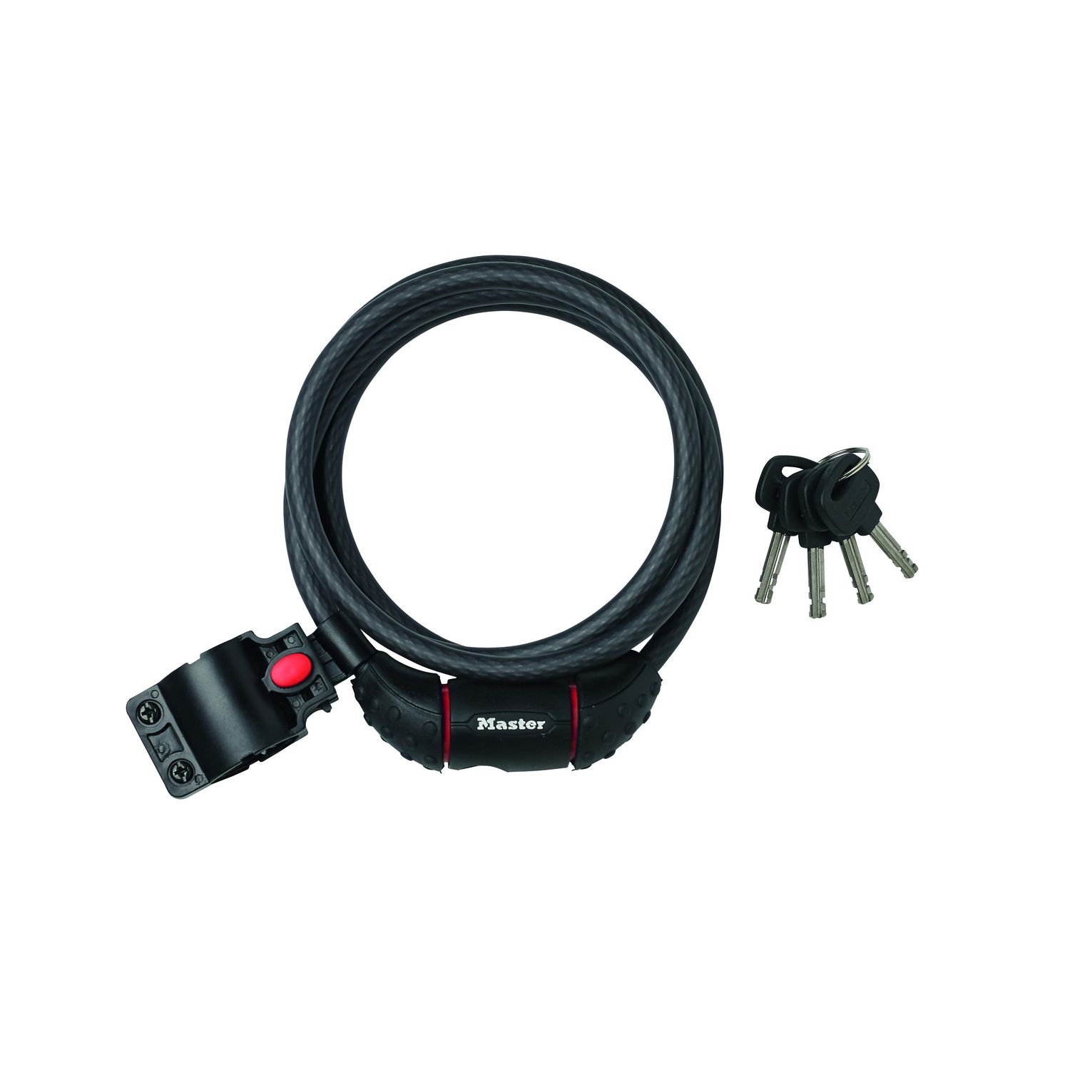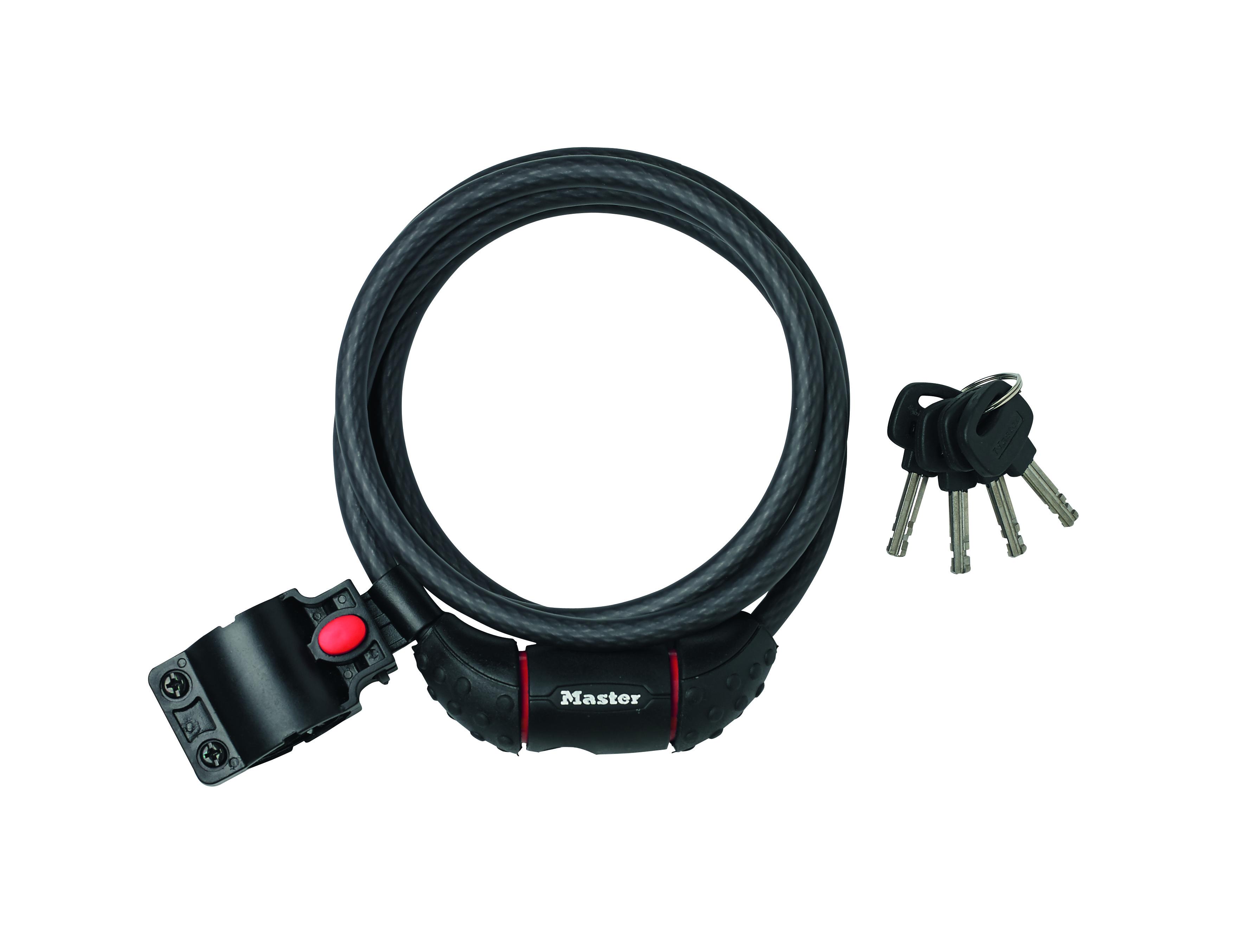 Le câble antivol à clé Master Lock nº 8130EURDPRO d'une longueur de 1,80 m et d'un diamètre de 10 mm est en acier torsadé pour une résistance et une flexibilité maximales. Le revêtement de protection en vinyle permet d'éviter les rayures. Le cylindre à disque avec clé assure une protection contre le
