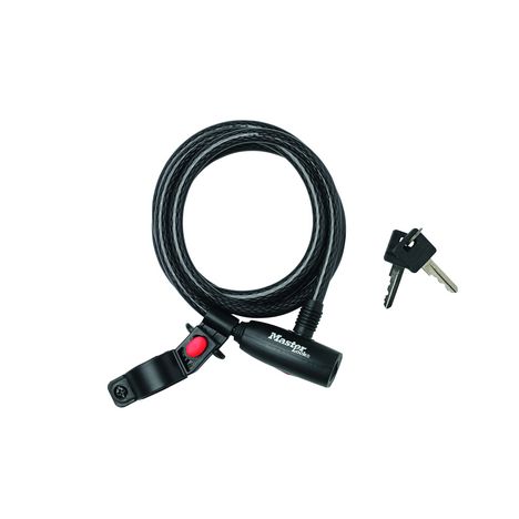Le câble antivol à clé Master Lock nº 8232EURDPRO d'une longueur de 1,80 m et d'un diamètre de 10 mm est en acier torsadé pour une résistance et une flexibilité maximales. Le revêtement de protection en vinyle permet d'éviter les rayures. Le mécanisme de verrouillage à goupilles intégré offre une ré