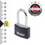 Le cadenas Master Lock nº 9140EURDBLKLF présente un corps en aluminium massif noir recouvert de 40 mm de large, durable et résistant à la corrosion. Le cadenas est adapté pour une utilisation en intérieur, il est idéal pour sécuriser casiers d'école ou de salle de sport, valises, bagages, sacs à dos