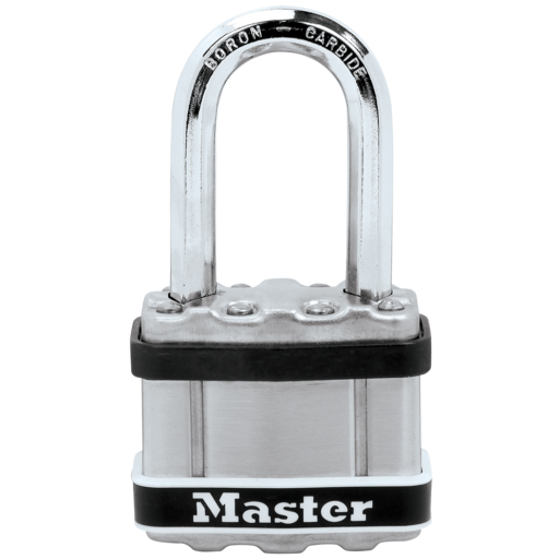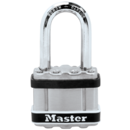 Le cadenas Excell® en acier laminé Master Lock n° M1EURDLFSTS dispose d'un corps de 44 mm de largeur avec coque en acier inoxydable pour un maximum de résistance et de protection contre les intempéries. L'anse octogonale de 8 mm de diamètre et 38 mm de haut se compose d'alliage de bore chromé, 50 %