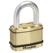 Le cadenas laminé Excell® Master Lock nº M15BEURDLF présente un corps en acier laminé d'une largeur de 64 mm pour une résistance et une fiabilité maximales. Il est entouré par des composants en laiton et en zinc pour une meilleure résistance aux intempéries. L'anse octogonale de 11 mm de diamètre et