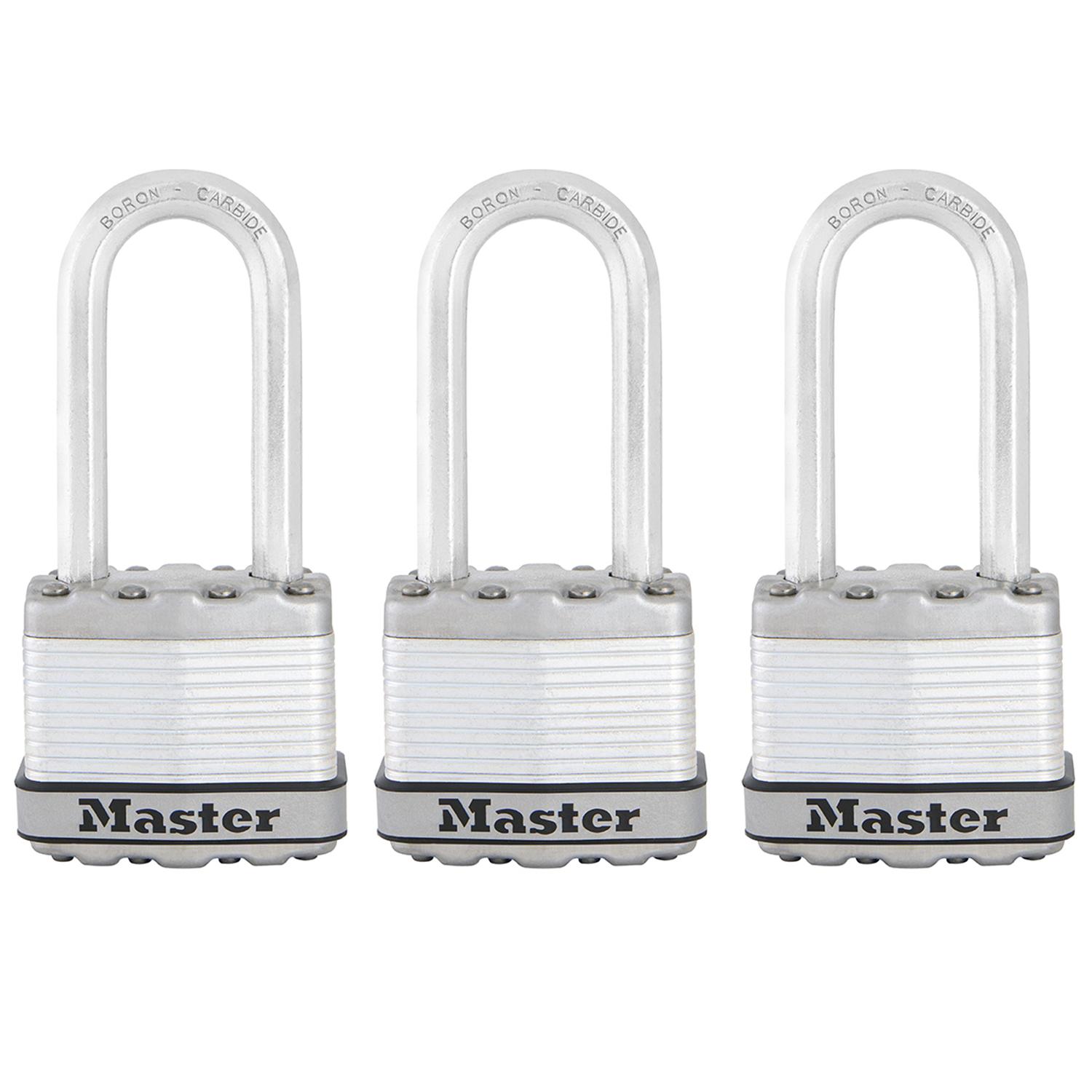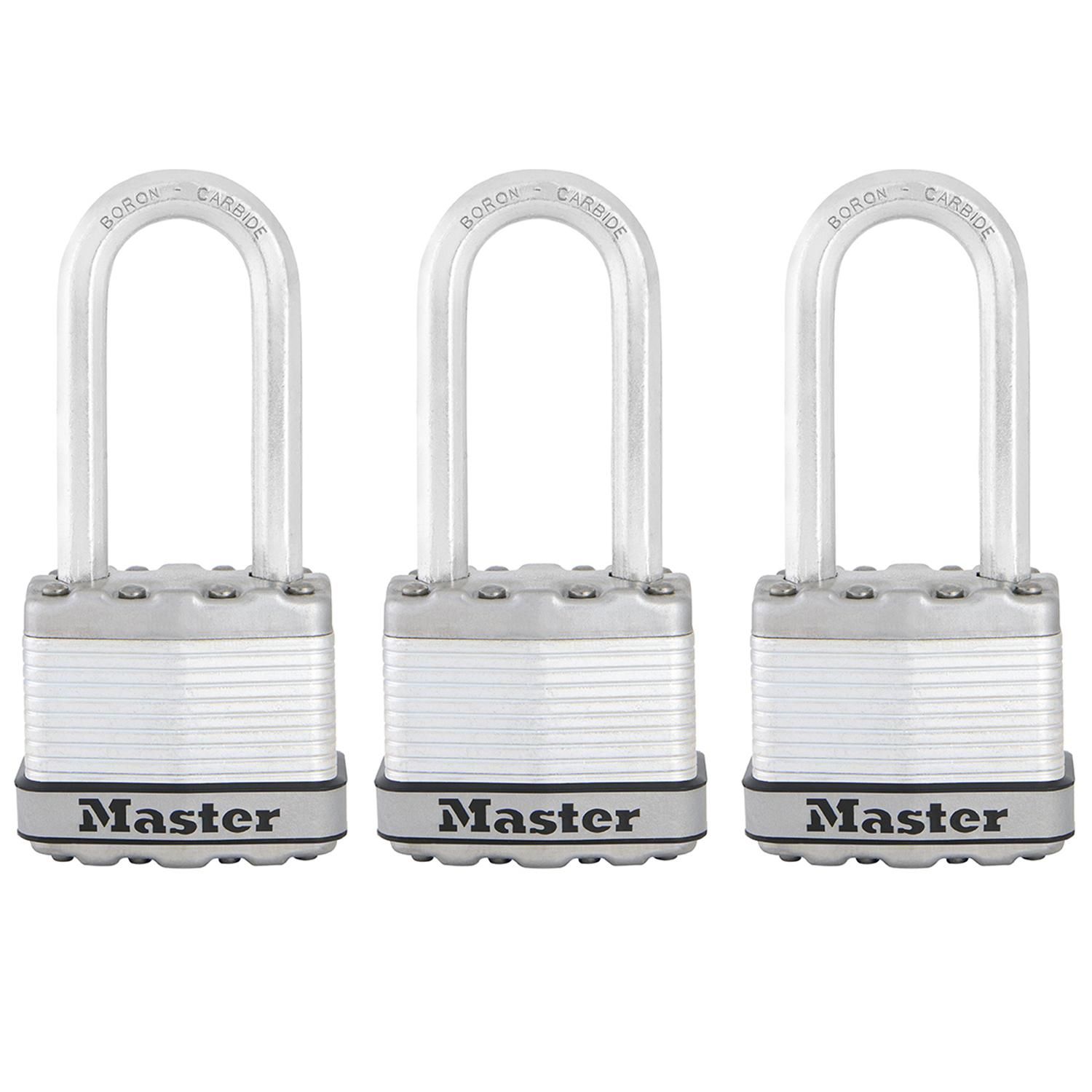 Les cadenas Excell® Master Lock nº M1EURTRILH présentent un corps en acier laminé d'une largeur de 45 mm pour une résistance et une fiabilité maximales. Ils sont entourés par des composants en acier inoxydable et en zinc pour une meilleure résistance aux intempéries. L'anse octogonale de 8 mm de dia