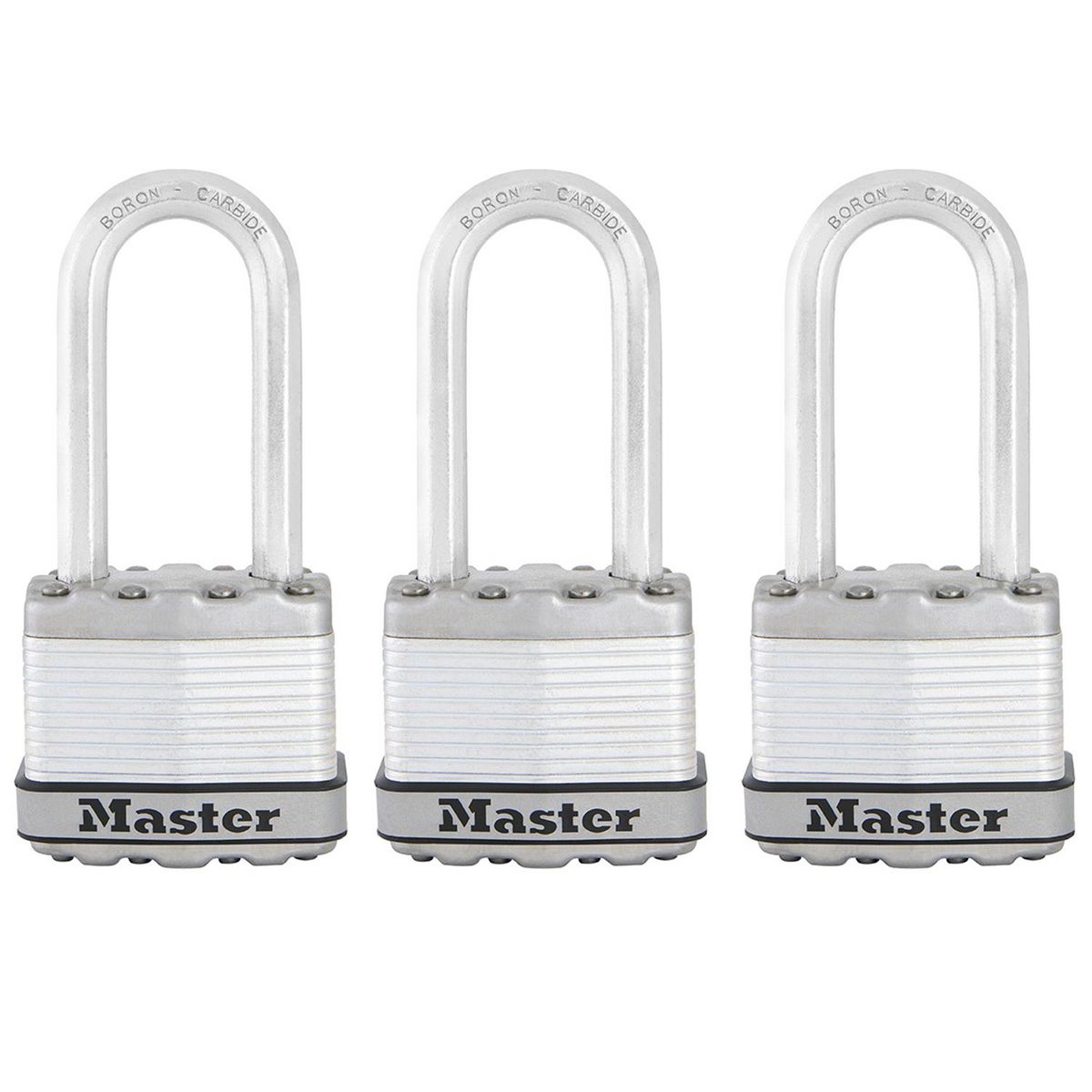 Les cadenas Excell® Master Lock nº M1EURTRILH présentent un corps en acier laminé d'une largeur de 45 mm pour une résistance et une fiabilité maximales. Ils sont entourés par des composants en acier inoxydable et en zinc pour une meilleure résistance aux intempéries. L'anse octogonale de 8 mm de diamètre et 51 mm de haut se compose de carbure de bore Tough-Cut™, 50 % plus résistant que l'acier cémenté, offrant une résistance maximale à la coupe et au sciage. Le cylindre à 4 goupilles offre plus de résistance au crochetage et le double verrouillage à billes offre une résistance maximale contre le forçage et le martelage. Ce cadenas haute sécurité est parfaitement adapté pour l'extérieur et pour sécuriser portails, grillages, garages ou encore remises. Le pack comprend 3 cadenas et 4 clés qui fonctionnent pour l'ensemble des cadenas. La garantie à vie limitée vous garantit une tranquillité d'esprit grâce à une marque sur laquelle vous pouvez compter.