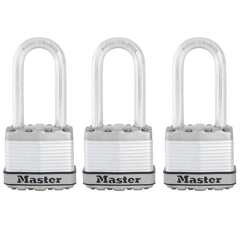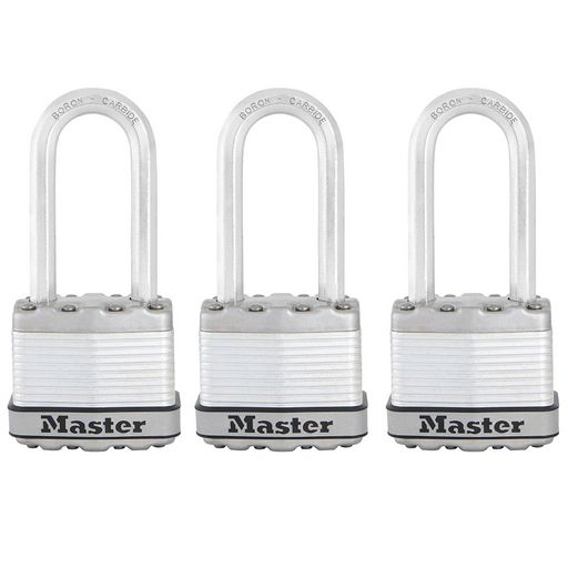 Cadenas Haute Sécurité [A Clé] [Acier Laminé] [Extérieur] [Anse L] [Pack de 3] M1EURTRILH