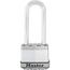 Le cadenas Excell® Master Lock nº M1EURDLJ présente un corps en acier laminé d'une largeur de 45 mm pour une résistance et une fiabilité maximales. Le corps est entouré par des composants en acier inoxydable et en zinc pour une meilleure résistance aux intempéries. L'anse octogonale de 8 mm de diamè