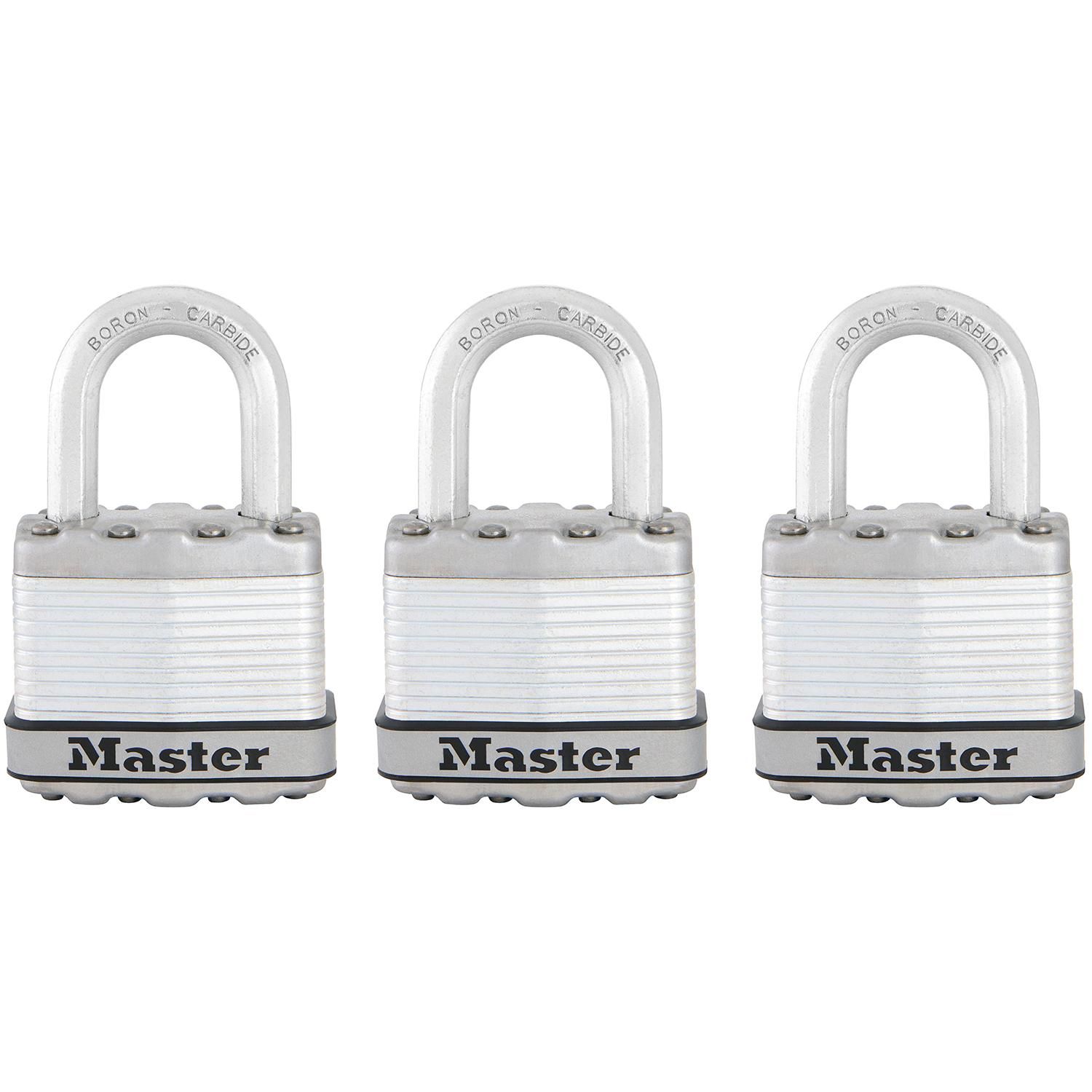 Les cadenas laminés Excell® Master Lock nº M1EURTRI disposent d'un corps de 45 mm de large en acier laminé pour une résistance et une fiabilité accrues et ils sont entourés par des composants en acier inoxydable et en zinc pour une meilleure résistance aux intempéries. L'anse octogonale de 8 mm de d