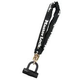 La chaîne vélo avec mini U Master Lock nº 8234EURDPRO d'une longueur de 90 cm présente des maillons en acier cémenté d'un diamètre de 10 mm, pour résister à la coupe et au sciage. L'antivol est adapté pour sécuriser tout type de vélos : vélos de route, VTT, vélos électriques. La gaine en nylon assur