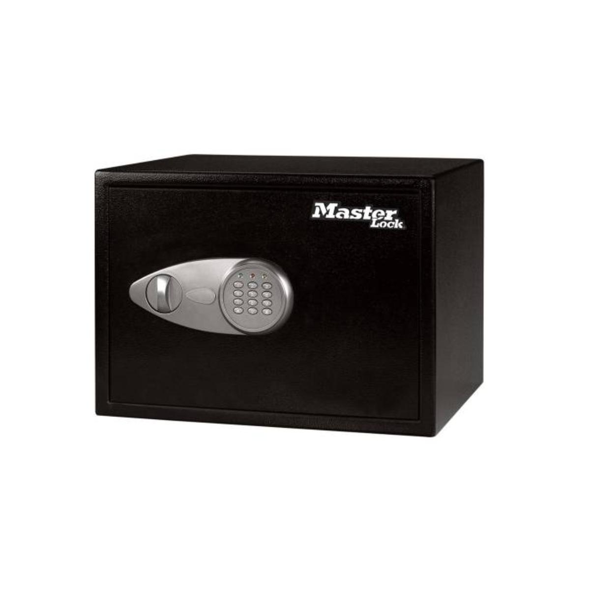 Master Lock 599333 Coffre-fort à poser en acier massif 599333 de Master lock. Le revêtement intérieur tapissé protège les biens contre les éraflures. Coffre fort à combinaison. verrouillage électronique. - Type de produit : Coffre fort.Type de pose : A poser.Type de fermeture : A code.Matière princi