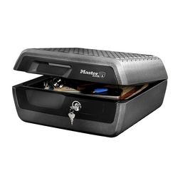Le caisson de sécurité format L Master Lock LCHW30100 protège vos documents importants (convient aux documents au format A4), supports média (Clé USB, CD, disques durs externes) et objets de valeur (papiers d'identité, passeports, livrets de famille, photos) contre le feu et les inondations. Sa taille et sa couleur le rende également discret dans une armoire ou dans un tiroir. La caisse ignifuge peut être posée ou fixée au sol (kit de fixation non fourni). Cette mallette de sécurité dispose d'une serrure à clé (2 clés fournies). Ce coffre de sécurité est homologuée UL/ETL et assure une protection contre le feu (60 minutes à 927°C) et l'immersion. Master Lock offre une garantie de remplacement après incendie à vie en plus de la garantie 2 ans limitée. La propriété anti-feu du coffre est assurée par un remplissage des parois au ciment, il n'est pas rare que lors du transport un peu de poussière non toxique apparaisse dans le coffre.