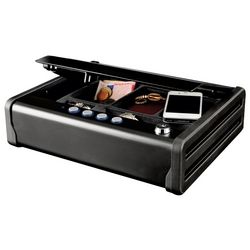 Le coffre-fort compact Master Lock MLD08E sera idéal pour garder discrètement en sûreté les objets de valeur. Ce coffre-fort numérique à accès rapide d'une capacité de 2,3 L a une construction solide en acier avec des charnières invisibles et garde vos objets de valeur en sûreté : bijoux, argent, pistolet et autres objets de valeur. Le verrouillage numérique programmable vous permettent de choisir une combinaison, mais 2 clés de sécurité sont également incluses au cas où vous oublierez le code. Le coffre-fort est doublé de mousse et possède une polaire amovible au fond pour éviter les rayures. Ce coffre résistant peut être solidement fixé avec des vis et pèse 5,4 kg.