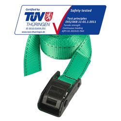 Le modèle Master Lock n° 3379EURDATCOL comprend deux sangles de 5 m de long et 25 mm de large avec une boucle en zamak. Boucle renforcée à dents pour atteindre une capacité d'arrimage de 150 kg. La sangle permet de sécuriser et d'attacher valises, cartons, matelas, meubles, matériel sportif et autres. Idéal pour les déménagements et une utilisation privée ou professionnelle. La sangle est certifiée par le centre de test agréé TÜV SÜD. Couleur aléatoire : bleu, vert ou rouge.