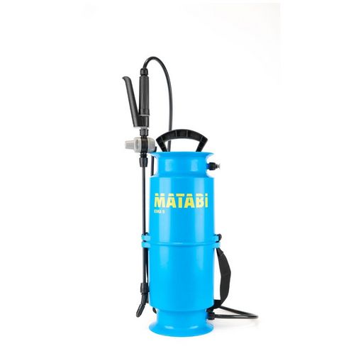 Pulvérisateur à pression préalable KIMA 9. Capacité utile 6 litres. Buse conique à jet réglable et adaptateur d&rsquo,accessoires. Enrouleur de tuyau à la base de la cuve. Lance en fibre de verre. Manette de lance ergonomique, large filtre avec joints viton et ressort en inox. Soupape de fermeture de la chambre à pression en viton. Utilisation et entretien facile. Simple accès à toutes les pièces. Dispositif pour maintenir l&rsquo,appareil avec les pieds lors de la mise en pression. Rallonge supplémentaire de 0,42 m. Garantie 3 ans.
