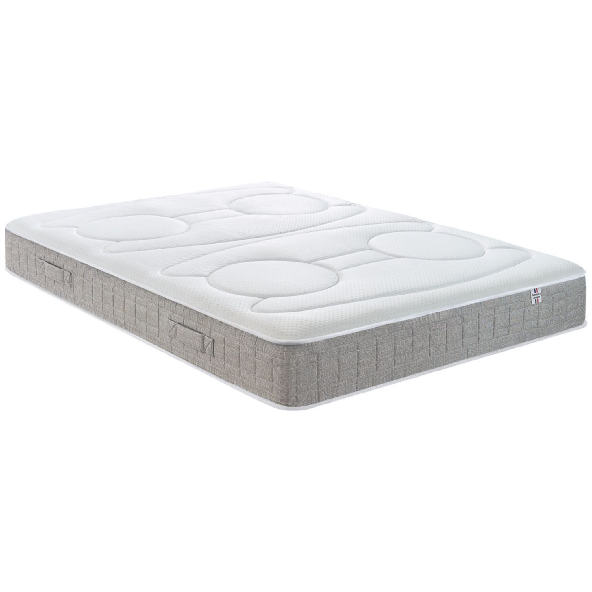 Le matelas RIVERA dispose d'une épaisseur totale de 24 cm, il est composé de mousse HR (Haute Résilience) 35 kg/m3 et de 5 cm de mousse à mémoire de forme. Au niveau du couchage il offre un accueil enveloppant qui s'adapte à votre morphologie et un soutien ferme. Avec ses deux faces de couchage, il vous accompagnera au fil des saisons (laine en hiver et soie et lin en été). Son coutil est en tissu stretch 100% polyester avec un traitement Aloe Vera pour une douceur absolue. Il est fabriqué en France à Limoges et sa garantie est de 5 ans. Le matelas RIVERA s'adapte également à tous les lits: il existe en taille 80x190 cm, 80x200 cm, 90x190 cm, 90x200 cm, 120x190 cm, 140x190 cm, 140x200 cm,160x200 cm, 180x200 cm!