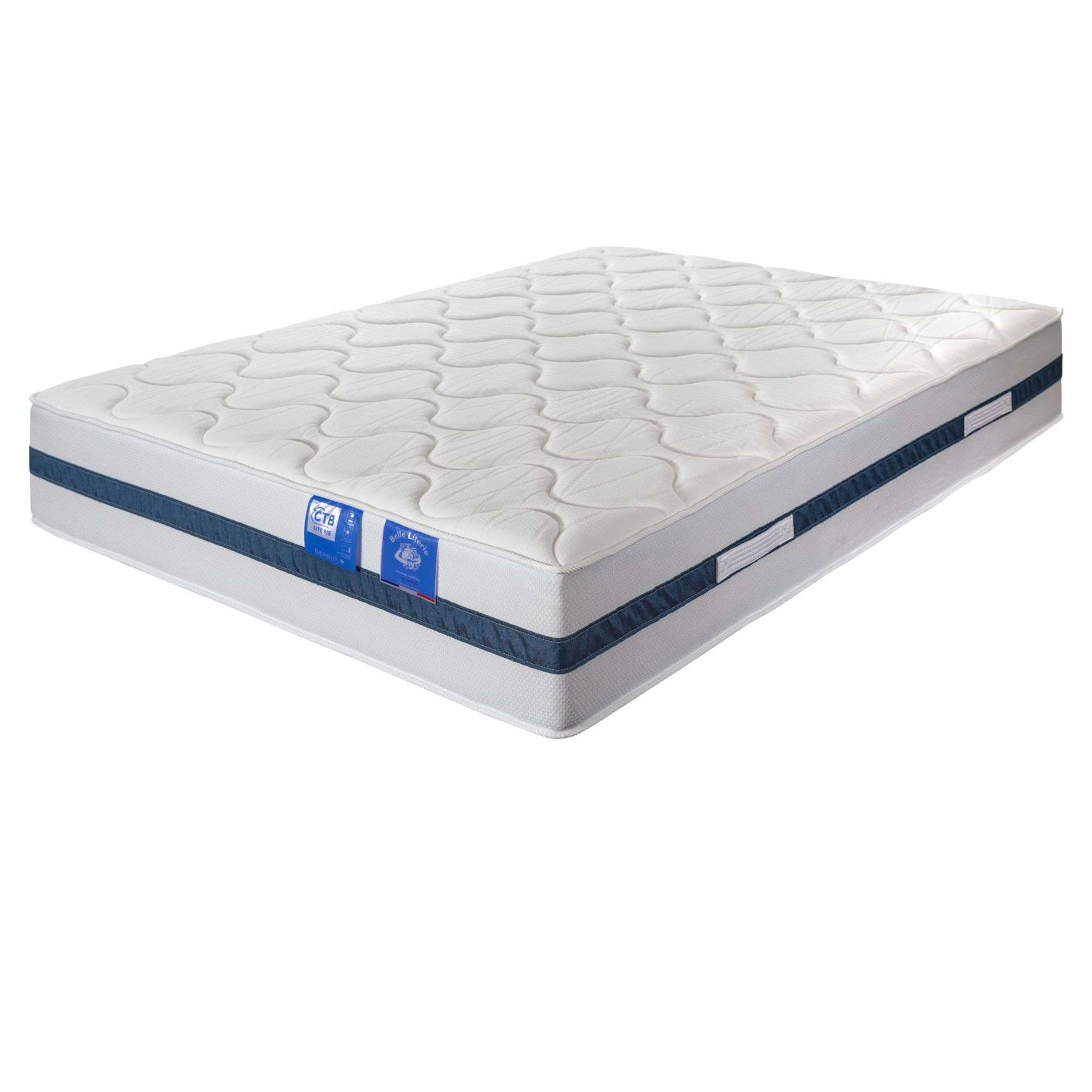 Matelas à 620 ressorts ensachés avec soutien lombaire renforcé. Accueil enveloppant en mousse HR Neotech®. Généreuse face de laine sur la face hiver. Soie naturelle sur la face été. Recouvert d'une toile traitée anti-acariens et anti-punaises de lit.